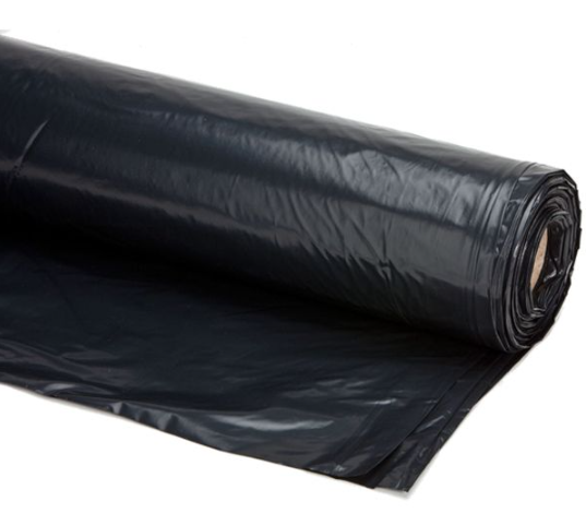 Zwarte PE-folie (LDPE) – zorgt voor optimale bedekking, houdt licht buiten en is beter zichtbaar bij gebruik dan transparante varianten.