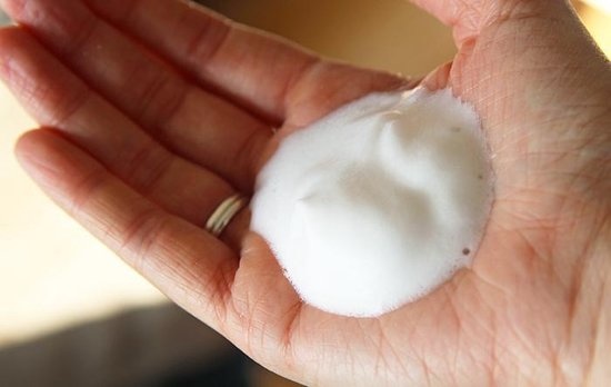 - Bij gebruik: druk dispenser in, breng schuim aan op de handen.