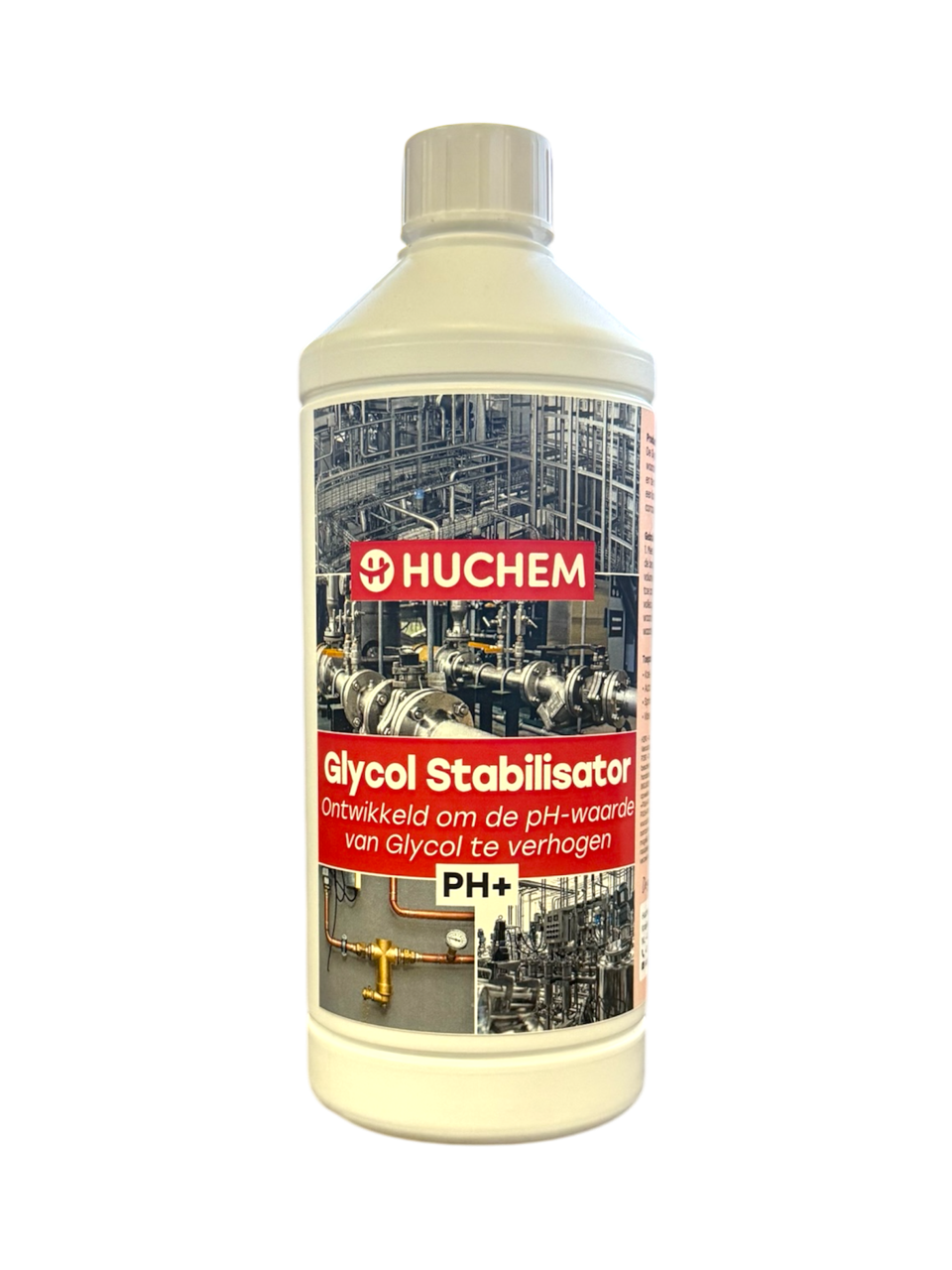 De Huchem Glycol Stabilisator pH+ (plus) is een professioneel additief voor het verhogen en stabiliseren van de pH-waarde in glycolsystemen. Ideaal voor koel-, verwarmings- en klimaatsystemen die gebruikmaken van ethyleen- of propyleenglycol.