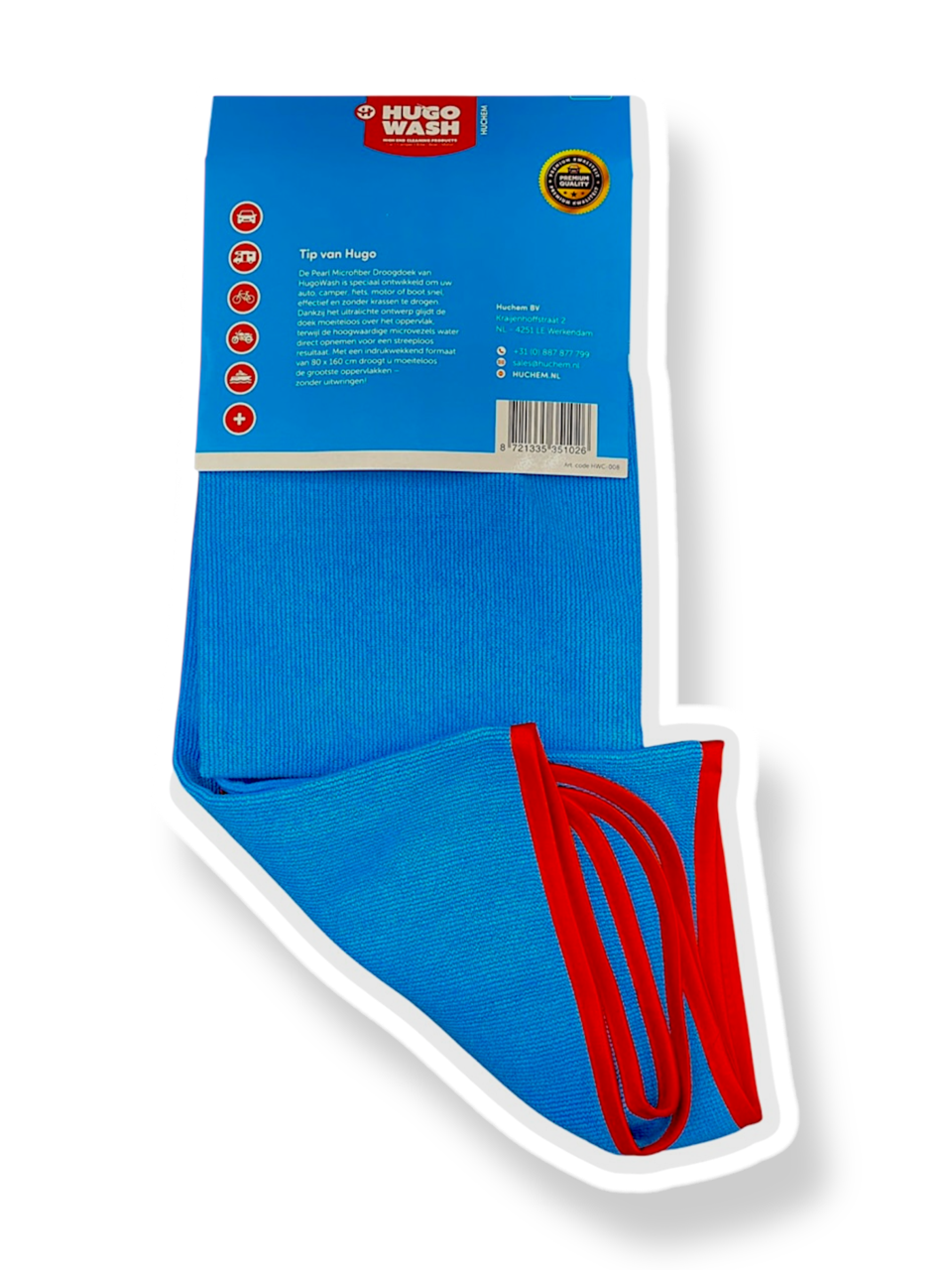 Droog je voertuig snel, krasvrij en streeploos met de premium Hugo Wash Pearl Microfiber Droogdoek. Deze XXXL-doek (80x160 cm) is ideaal voor auto, camper, motor, fiets en boot.