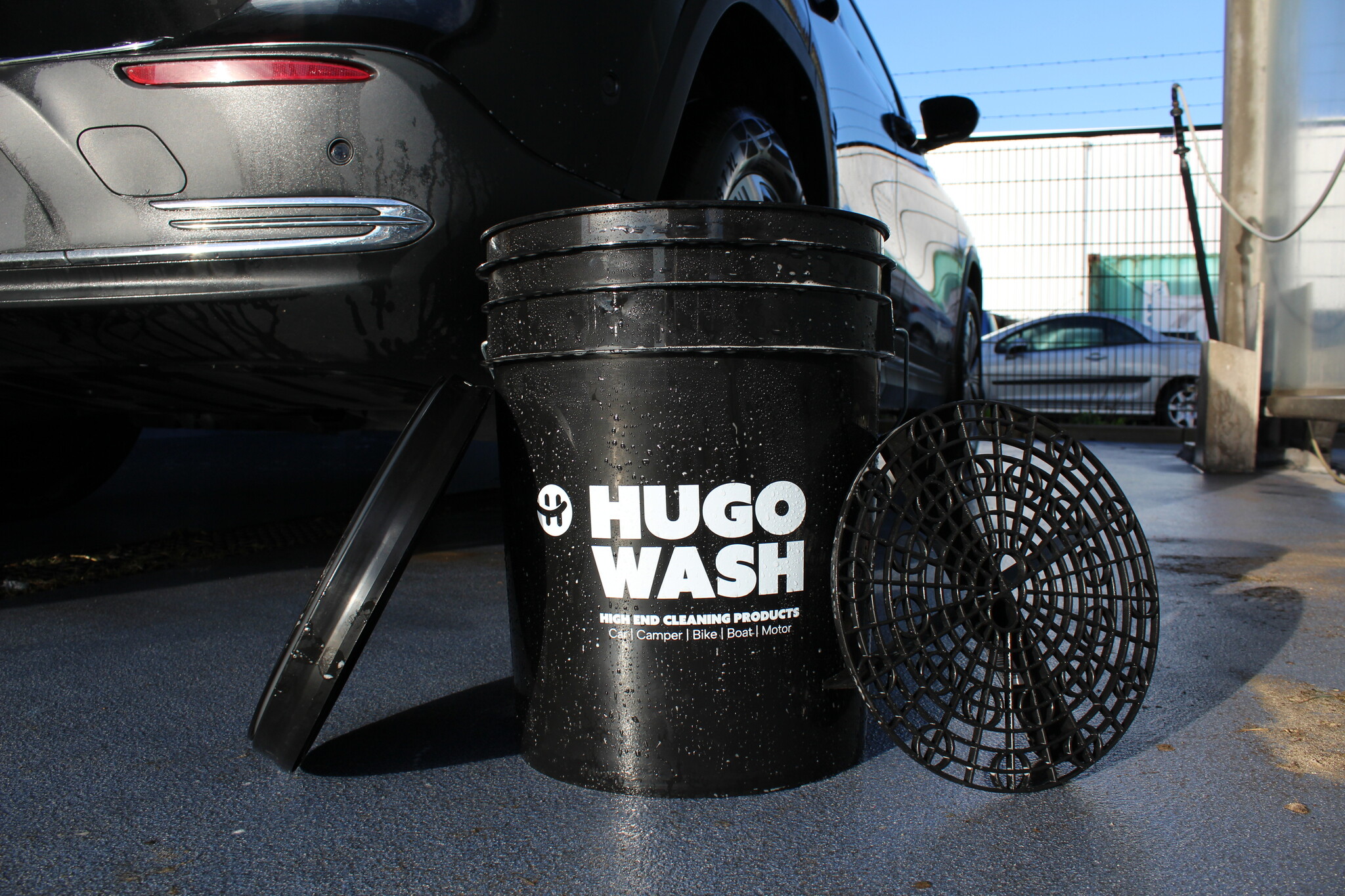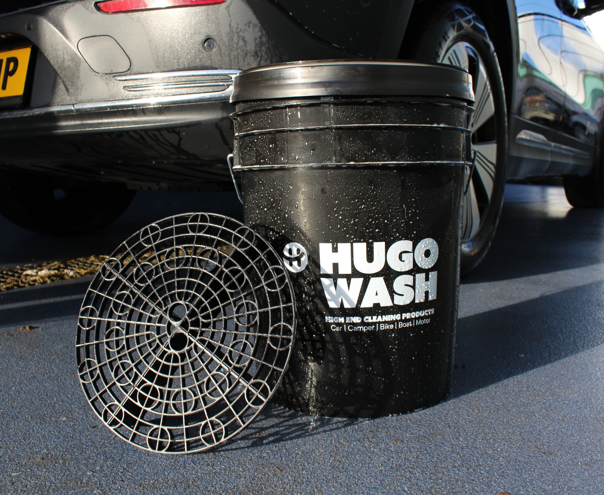 Voorkom krassen tijdens het wassen van auto, camper, motor, fiets & boot met de Hugo Wash Roosterbeschermer & Emmer wast u duurzaam en herbruikbaar.