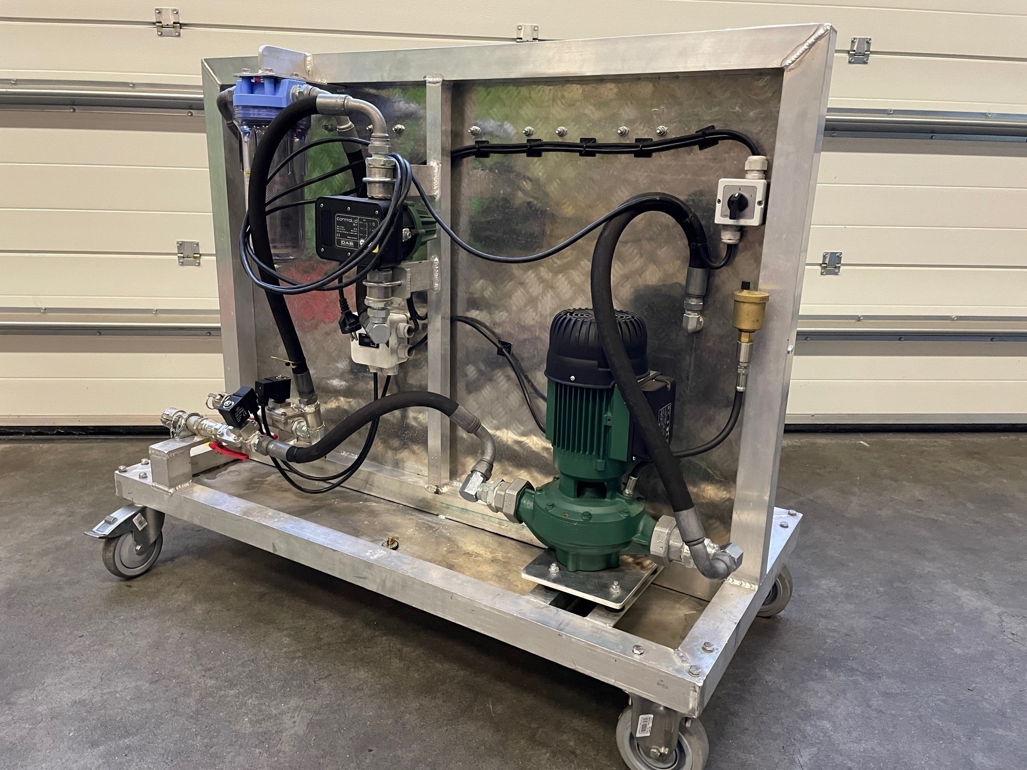 Om de glycol filter aan te sluiten heeft u 3/4'' binnen- of buiten draad nodig, zodat u alles kunt aansluiten. Het systeem word verder eenvoudig verstuurd in een stevige transport koffer. Hier zitten ook nog extra koppelingen in, mocht dit nodig zijn.