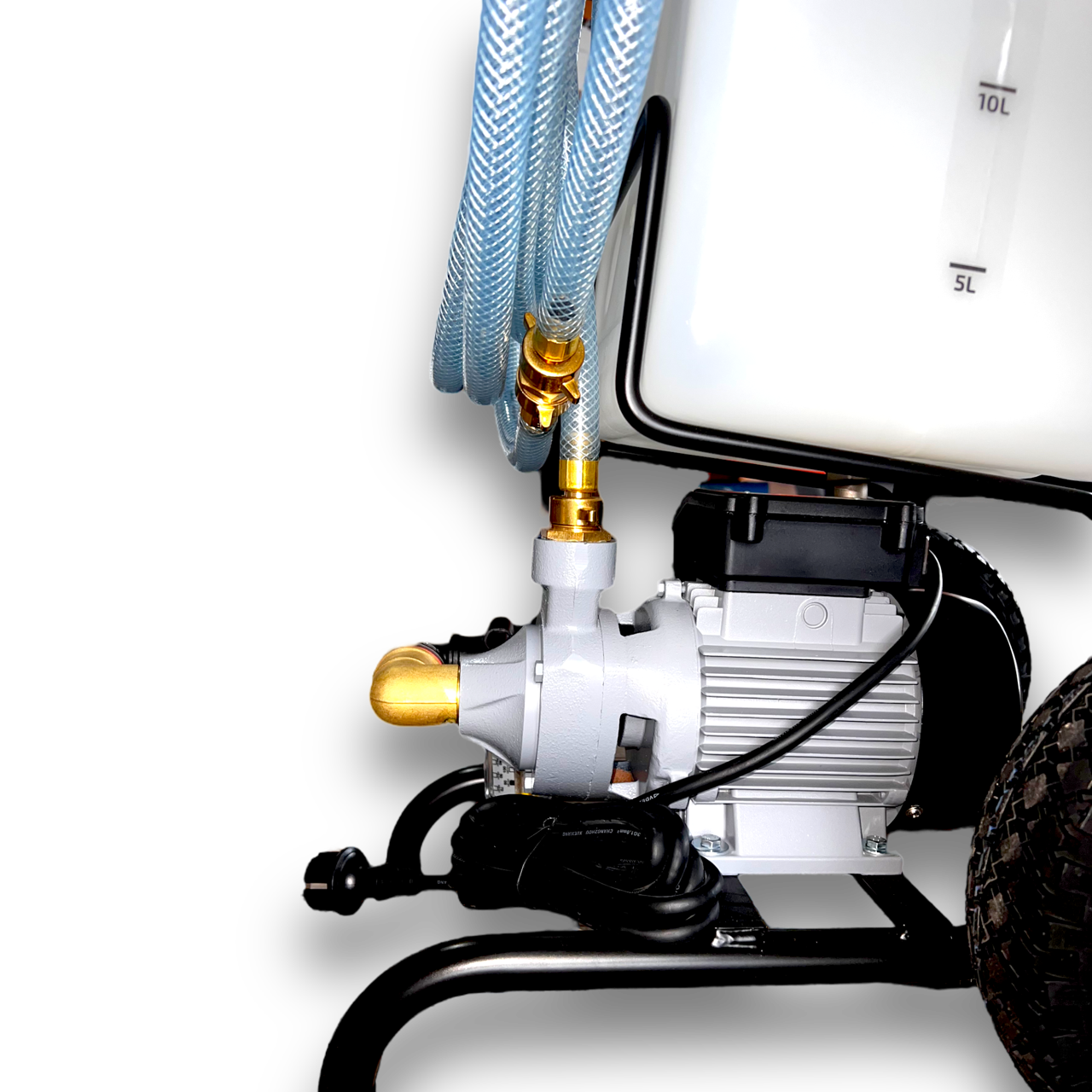 Dankzij wielen, afneembare as & wielen en handgreep is de pomp gemakkelijk te verplaatsen.