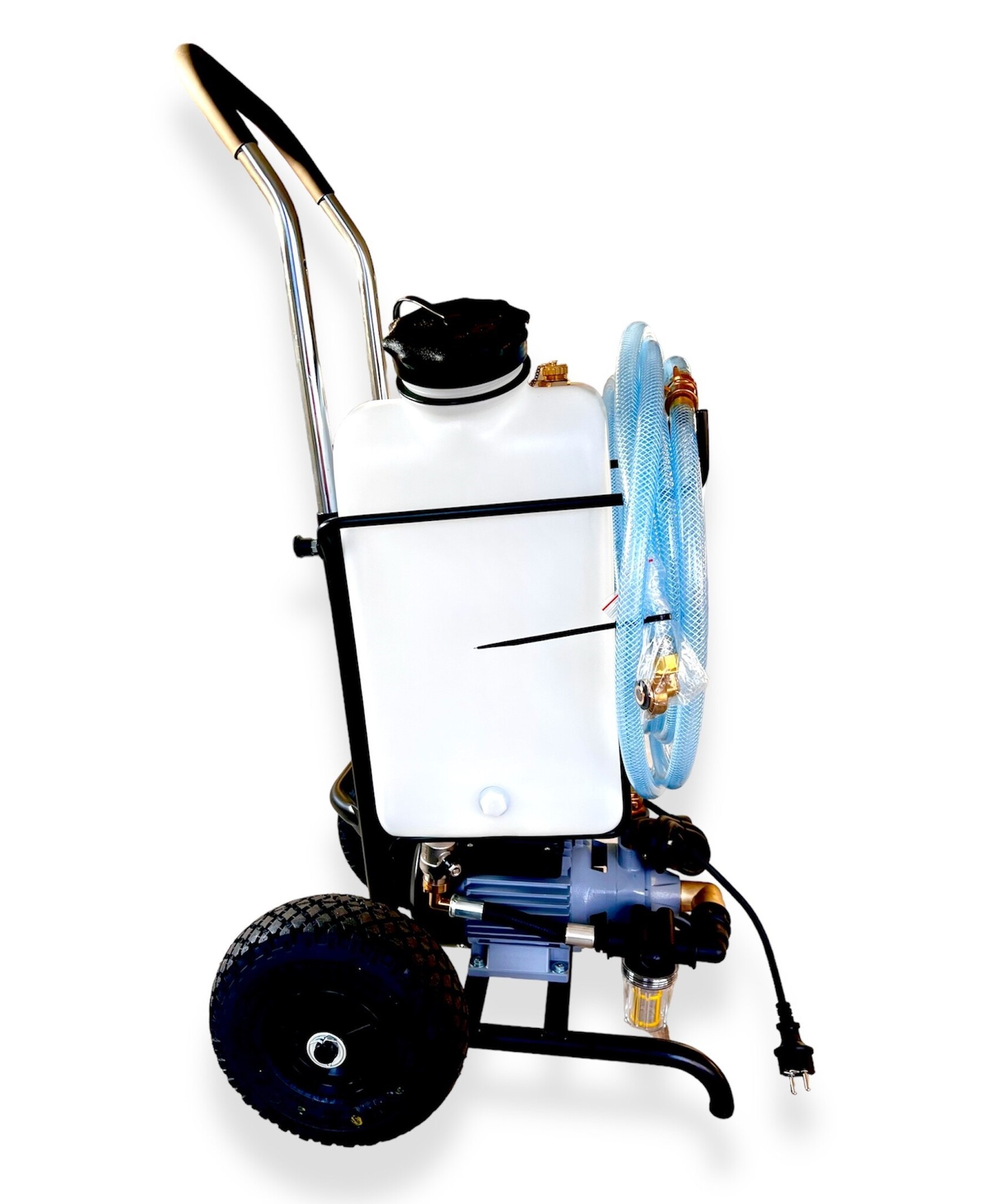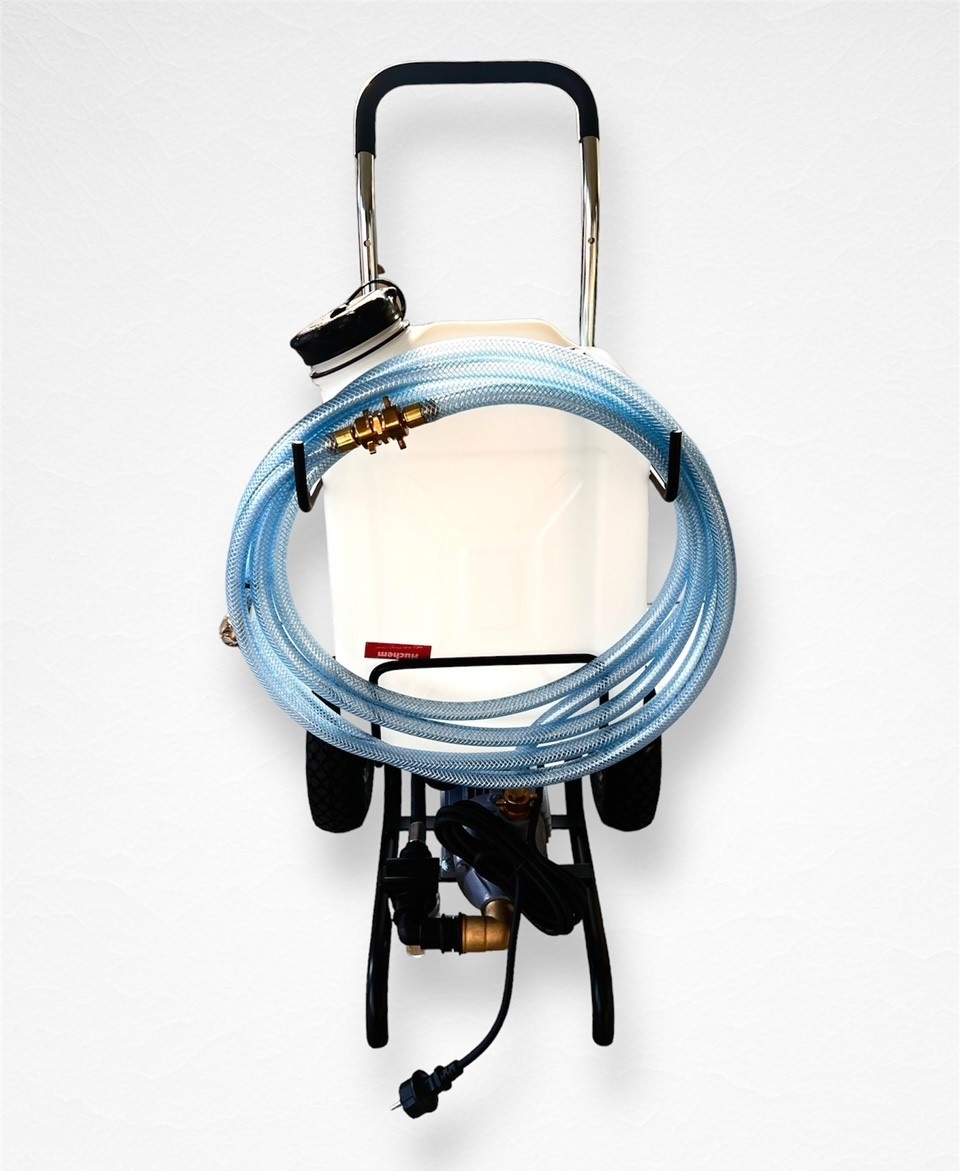 30 l PE-bus met schaalverdeling + afsluitkraan, vul-/spoelslangen, fijn filter met kijkglas, telescoopsteel, etc.