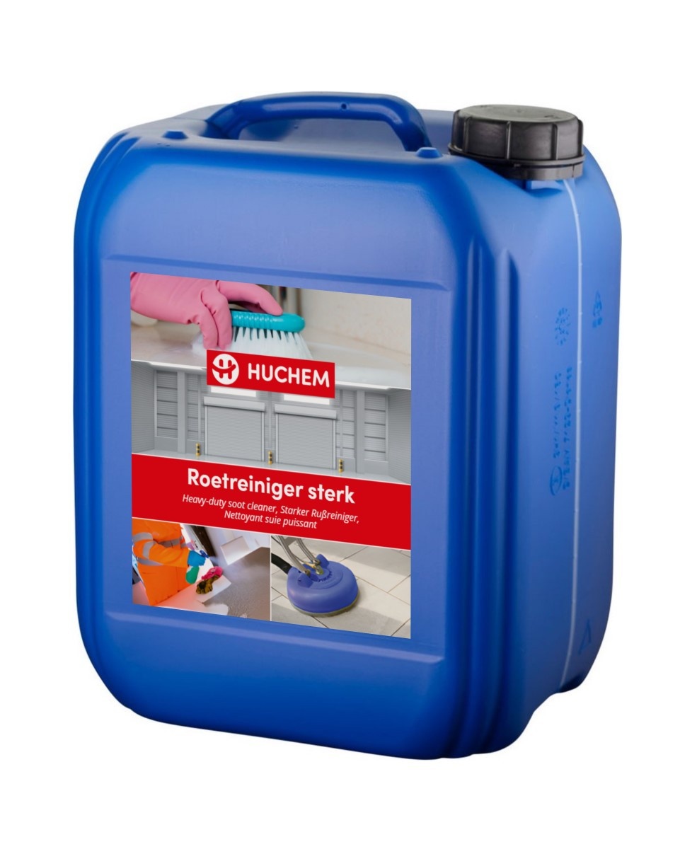 Huchem roetreiniger Sterk is speciaal ontwikkeld voor het verwijderen van zwarte aanslag (roet), nicotine en vlekken door brand, uitlaatgassen, kachels of fornuizen. Het kan toegepast worden op allerlei oppervlaktes zoals metalen, muren en plafonds. De reiniger kan worden ingezet bij het opruimen van schades na brand.