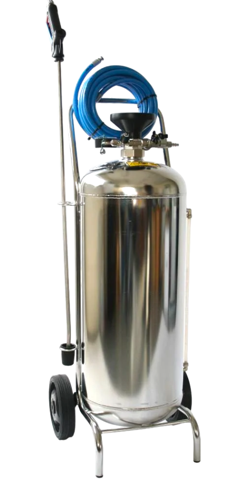 Het duurzame schuimtoestel INOX 24 L (Foam-Matic) combineert hoogwaardige RVS-constructie met krachtige schuimproductie dankzij perslucht en water. Ideaal voor professionals die long-acting schuim en effectieve reiniging verlangen. Dankzij de robuuste 24 liter tank, wielen en industriële drukinstellingen realiseert u snel en efficiënt optimale reinigingsresultaten.