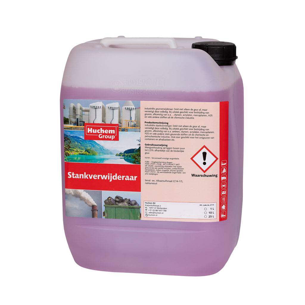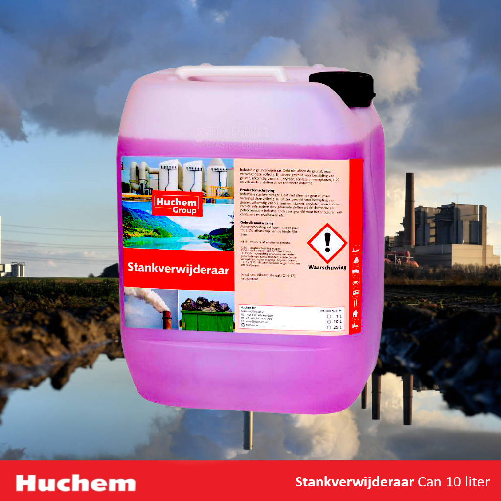 Industriële stankverwijderaar. Dekt niet alleen de geur af, maar verwijdert deze volledig. Bij uitstek geschikt voor bestrijding van geuren afkomstig van o.a. aminen, styreen, acrylaten, mercaptanen, H2S en vele andere stoffen uit de chemische industrie.
