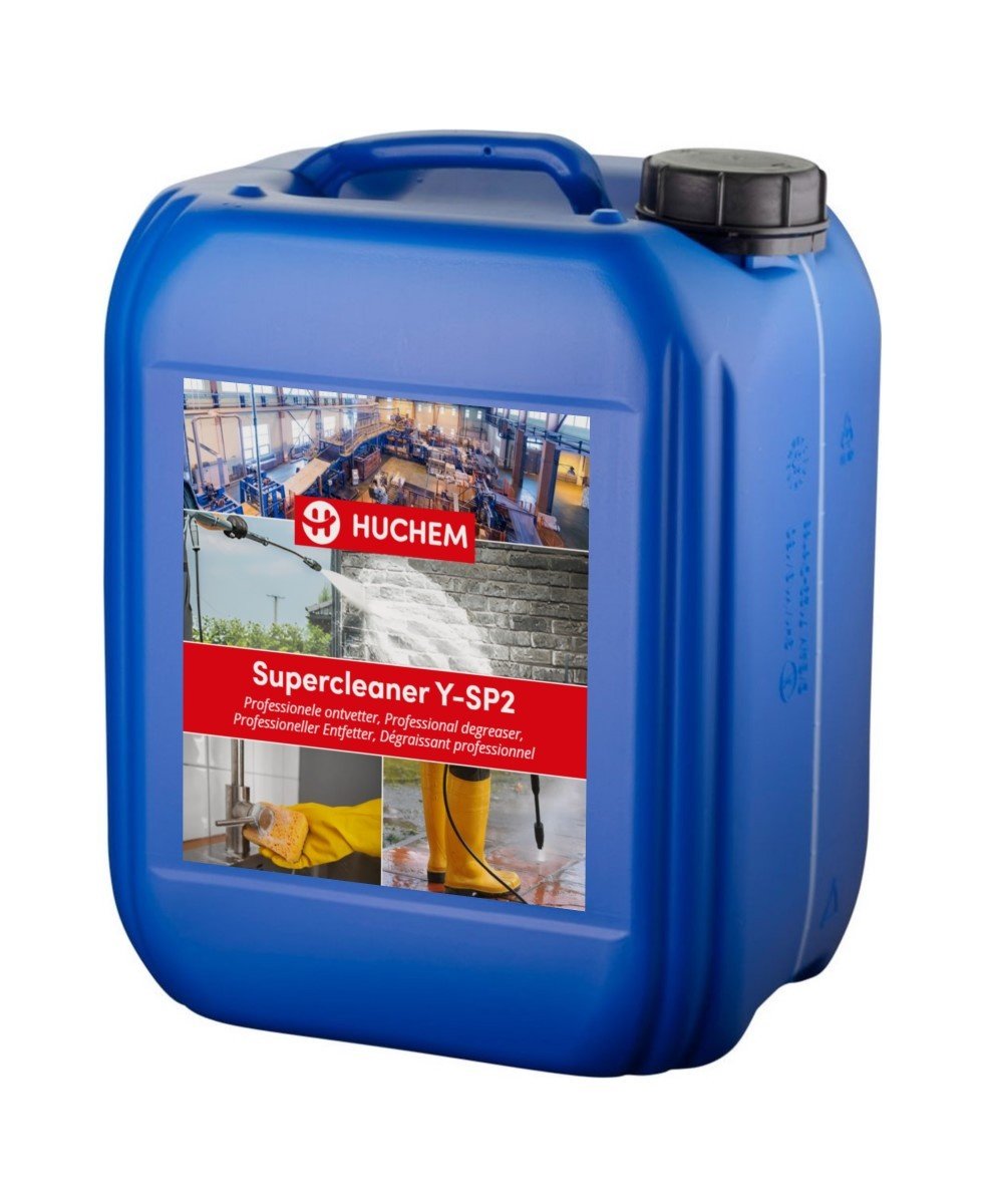 Huchem Supercleaner Y-SP2 is een geconcentreerde, industriële reiniger ontwikkeld voor professionele toepassingen. Dankzij de krachtige samenstelling met uitgebalanceerde oppervlakte-actieve stoffen verwijdert deze reiniger moeiteloos vetten, oliën, verkeersvuil, atmosferische aanslag en hardnekkige industriële vervuiling.