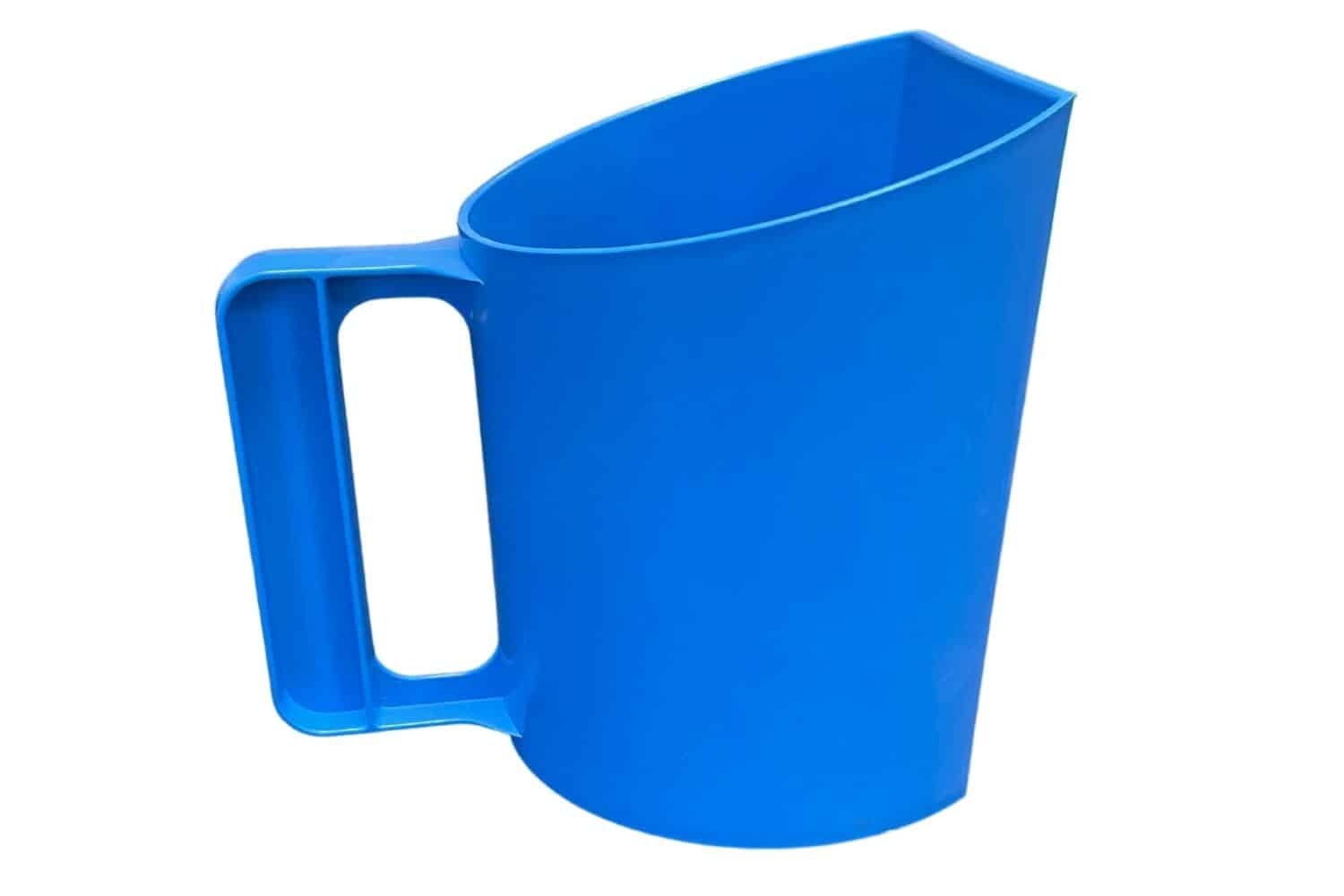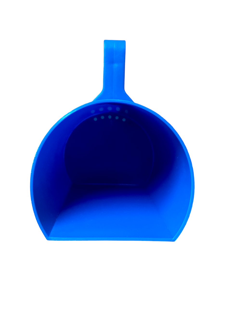 Blauwe voerschep bekermodel uit sterk polypropyleen met een inhoud voor 1kg voer. Door een voerschep te gebruiken is het eenvoudiger om de dagelijkse hoeveelheid voer hetzelfde te houden
